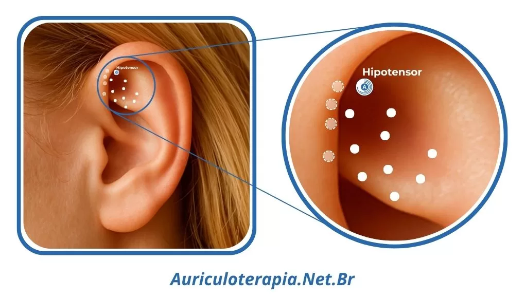 O ponto Hipotensor está localizado no bordo superior da Fossa Triangular, à frente do ponto Hepatite e próximo ao bordo interno da Hélix.